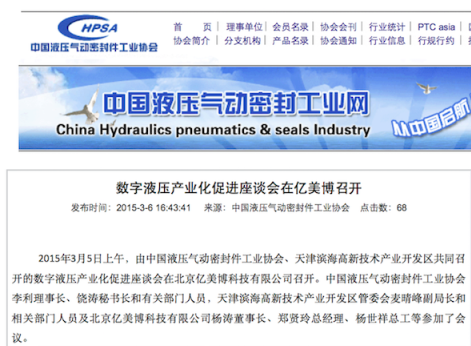 数字液压产业化发展受到行业协会及地方政府的关注和支持。亿美博目前在天津、江西等地展开布局和智慧工厂建设...
